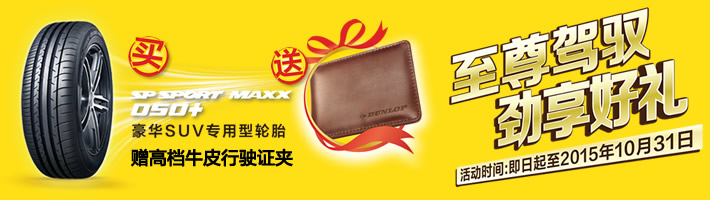 至尊駕馭 盡享好禮!購買兩條任意規(guī)格SP SPORT MAXX 050+輪胎,即贈(zèng)高檔牛皮行駛證夾一個(gè)