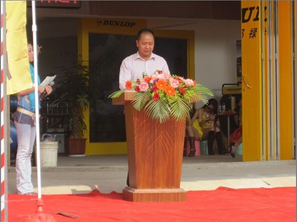 ??????? 2010年11月9日,揭陽市祥運(yùn)輪胎銷售部,作為鄧祿普卡客車輪胎在全國(guó)范圍內(nèi)的第三家旗艦店,舉行了非常盛大的開業(yè)剪彩儀式.住友橡膠(常熟)有限公司企劃營(yíng)業(yè)部津崎正浩部長(zhǎng),鄧祿普卡客車輪胎廣東省,湖南省,海南省(三省)總代理商?hào)|莞市匯福輪胎有限公司總經(jīng)理王連富先生等貴賓參加了此次的開業(yè)慶典.