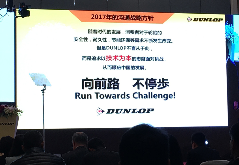 同時,在本次大會上,鄧祿普輪胎提出了2017年全新的品牌宣傳語 “向前路,不停步”(英文:Run Towards Challenge)。鄧祿普將秉承著這種精神,不斷向前,通過不懈的技術(shù)革新全面打造鄧祿普高新技術(shù)形象,用技術(shù)改變輪胎,向社會提供高技術(shù)含量的頂級輪胎產(chǎn)品。而品牌宣傳方面,鄧祿普品牌將延續(xù)2016年的方向,通過攜手目前中國各個體育領(lǐng)域中擁有不斷挑戰(zhàn)精神的佼佼者們, 向中國的消費者傳達品牌自身積極面對挑戰(zhàn)的態(tài)度。