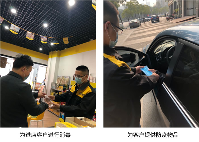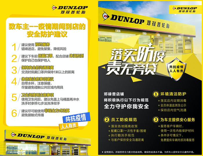 鄧祿普輪胎門店同樣積極響應(yīng),嚴(yán)格落實門店防疫措施,防疫工作均達(dá)到當(dāng)?shù)卣膹?fù)工標(biāo)準(zhǔn)。門店除體溫檢測、工作區(qū)域消毒等基本防疫工作外,有條件的門店,還開展服務(wù)升級,為到店客戶提供車內(nèi)消毒服務(wù)和防疫物資,為不便到店的顧客提供上門服務(wù)及上門取送車等服務(wù)。