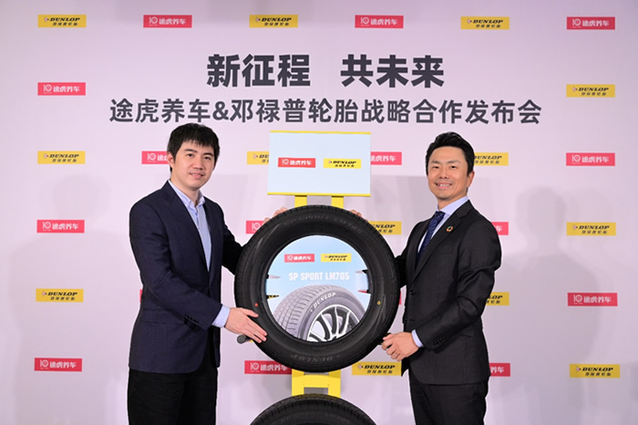 左:途虎養(yǎng)車創(chuàng)始人兼CEO陳敏、右:鄧祿普輪胎銷售有限公司董事長德毛裕司