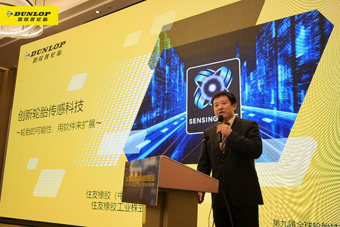 此次,住友橡膠集團AS事業(yè)部湯巍峰科長針對當下可持續(xù)發(fā)展時代的大背景,發(fā)表了“碳中和時代的輪胎創(chuàng)新解決方案——擴展輪胎可能性的軟件路徑”主題演講。為在場嘉賓和觀眾展示了住友橡膠集團的創(chuàng)新軟件化輪胎傳感科技——“SENSINGCORE(核心傳感)”,介紹了產(chǎn)品的開發(fā)背景與性能優(yōu)勢。