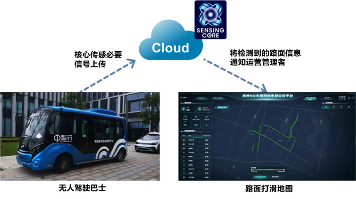蘇州市相城區(qū)作為長三角地區(qū)重要的交通樞紐,近年來經(jīng)濟發(fā)展迅速,智慧城市建設(shè)如火如荼,除無人駕駛巴士和出租車外,還有無人配送車、無人清潔車等600多輛無人駕駛車輛已投入示范應用。 在這項舉措中,由在示范區(qū)內(nèi)運行的無人駕駛巴士將車輛信息(如核心傳感所需的車輪速度信號)傳輸?shù)较葘ВㄌK州)數(shù)字產(chǎn)業(yè)投資有限公司管理的智能網(wǎng)聯(lián)云控平臺。 檢測到的路面信息將以 "路面打滑地圖 "等形式在云控平臺上呈現(xiàn)給運營管理者,用于安全可靠的運營管理。 此外,通過“核心傳感”掌握車輛重量和輪胎狀態(tài),將在高效運行管理、輪胎自動檢測、提高輪胎生命周期等方面創(chuàng)造新的價值。