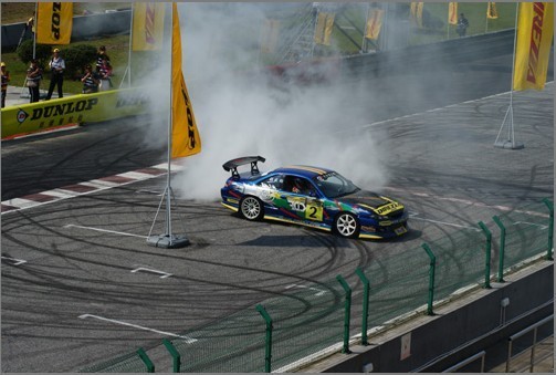 ??? 10月6日,由鄧祿普輪胎冠名贊助的“2009鄧祿普DIREZZA杯首屆全國(guó)汽車(chē)漂移系列賽”在上海天馬山賽車(chē)圓滿結(jié)束。漂移賽吸引了眾多職業(yè)車(chē)手和大量賽車(chē)愛(ài)好者前來(lái)報(bào)名,經(jīng)過(guò)賽事組委會(huì)篩選,最終有15名車(chē)手進(jìn)入資格賽,經(jīng)過(guò)雙車(chē)追走PK的激烈角逐,浙江名將張少華力壓臺(tái)灣地區(qū)著名漂移車(chē)手張盛鈞,奪得冠軍,他也由此獲得了首位全國(guó)漂移冠軍的殊榮。來(lái)自廣東的漂移新秀黃欽杰表現(xiàn)出眾,捧得季軍獎(jiǎng)杯。比賽當(dāng)天正值十一長(zhǎng)假,吸引了大量觀眾前來(lái)觀賽,還吸引了多家媒體前來(lái)報(bào)道。