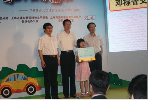 ??????? 6月14日,在上海的正大廣場,入圍小選手參加了本次繪畫大賽的頒獎儀式,上海市浦東新區(qū)交通警察支隊(duì)王履敏支隊(duì)長,副支隊(duì)長劉文濤先生、上海市浦東新區(qū)精神文明建設(shè)委員會辦公室常務(wù)副主任沈曉明先生,上海市浦東新區(qū)青少年保護(hù)委員會辦公室主任顧君忠先生,住友橡膠(常熟)有限公司董事長野尻恭先生、少年報(bào)社總編輯杜曉峰先生,到場并致詞。經(jīng)過細(xì)致嚴(yán)格的層層評選,根據(jù)題材立意等全方面的考量而選出24幅優(yōu)秀的作品在頒獎活動現(xiàn)場得到展出?,F(xiàn)場一幅幅充滿童趣而又立意深刻的交通安全繪畫作品,仍然吸引了大量的過往行人駐足觀賞,讓整個頒獎現(xiàn)場人頭傳動,更有許多上海本地的小朋友與父母一起來到頒獎現(xiàn)場觀看入選作品,讓家人和自己一起接受了一次新的交通安全知識的學(xué)習(xí)。