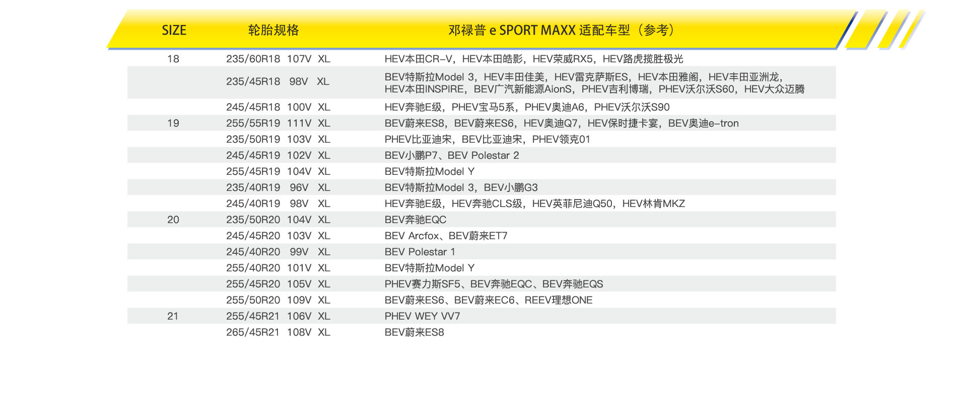 | 45 | 255/45R21 | 106 | V | ● | 763 | 255 | 8?J | 國產(chǎn) | ● | |