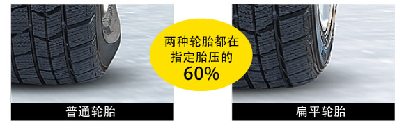 冬季輪胎的溝槽深度磨損至新胎花紋的50%以上后,就不可再作為冬季輪胎使用。胎側(cè)“↑”指示方向的胎面花紋溝內(nèi),設(shè)有表示磨耗程度的標(biāo)志。請(qǐng)確認(rèn)該磨耗標(biāo)志是否露出表面。