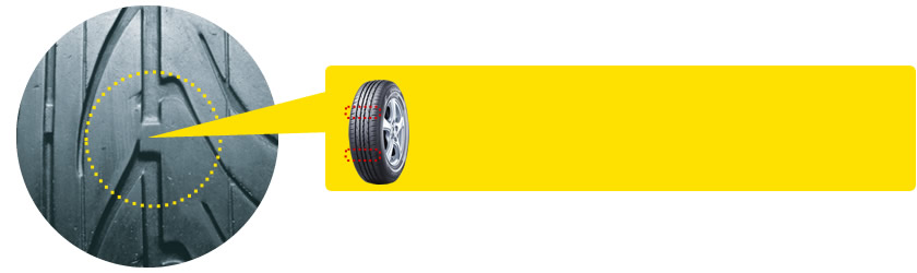 輪胎因磨損會導(dǎo)致花紋溝槽變淺、露出防滑警告標(biāo)記。