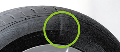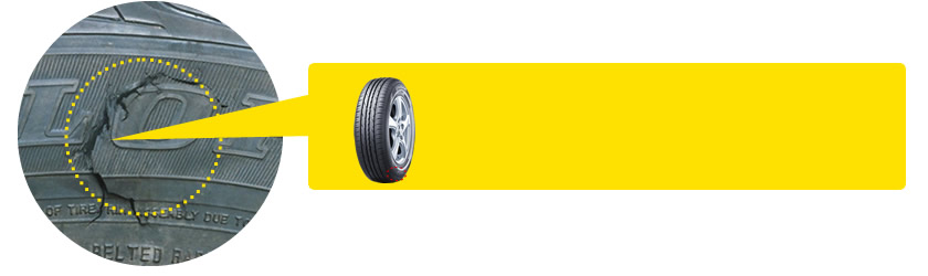 發(fā)現(xiàn)胎側(cè)部位出現(xiàn)鼓起變形時請馬上更換輪胎。可能輪