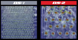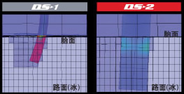 輪胎駛過(guò)雪地的印跡中各部分雪的密度分布以不同顏色區(qū)分(紅色部分密度高)。如圖所示,DS-2對(duì)于駛過(guò)處中央部位產(chǎn)生的力更強(qiáng)。